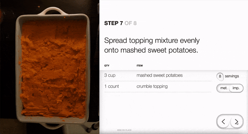 A paced recipe reading experience for people with their hands full